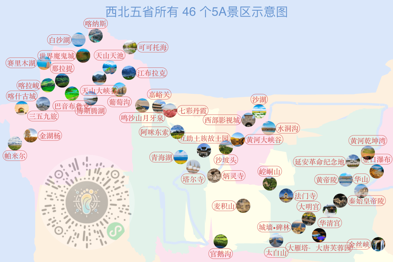 [图片]西北五省所有 46 个5A景区位置地图